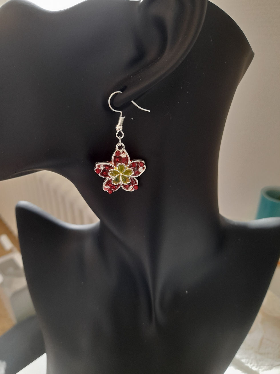 BOUCLE D’OREILLES BRELOQUE FLEUR COULEUR ARGENT